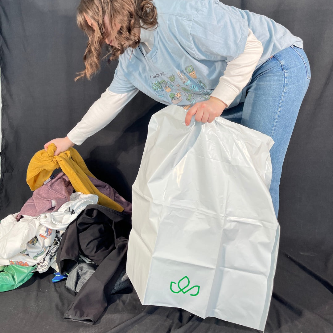 If you are located in the valley please set up a pick up or bring in your items during business hours! We will of course recycle your materials still. If you are looking for a sustainable way to recycle your textiles and aren't local check out Trashies Take Back Bags in the mean time!